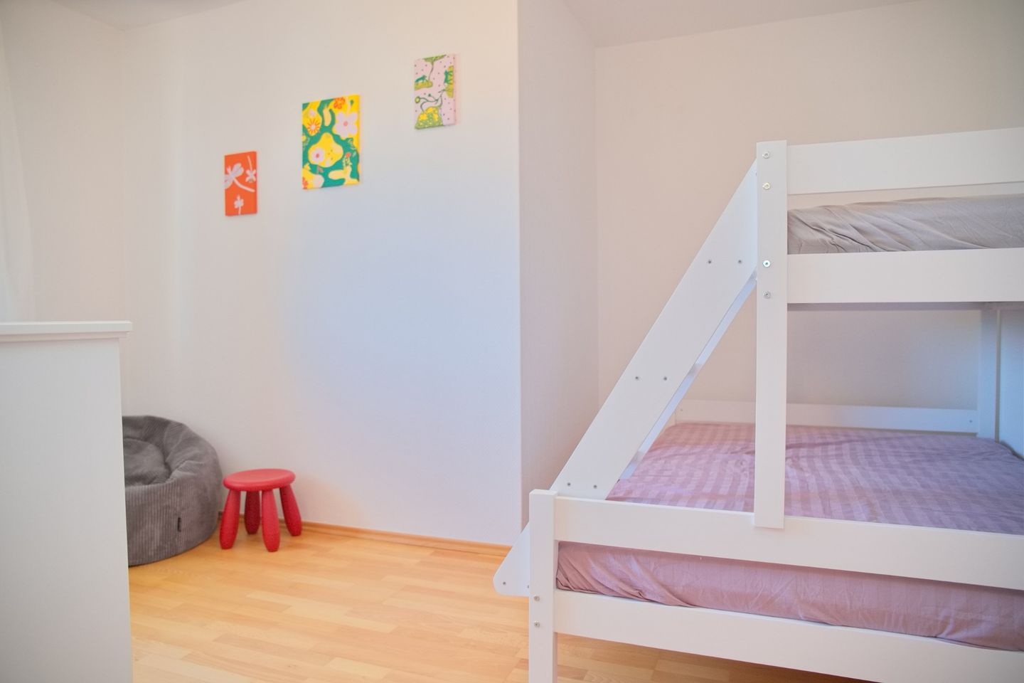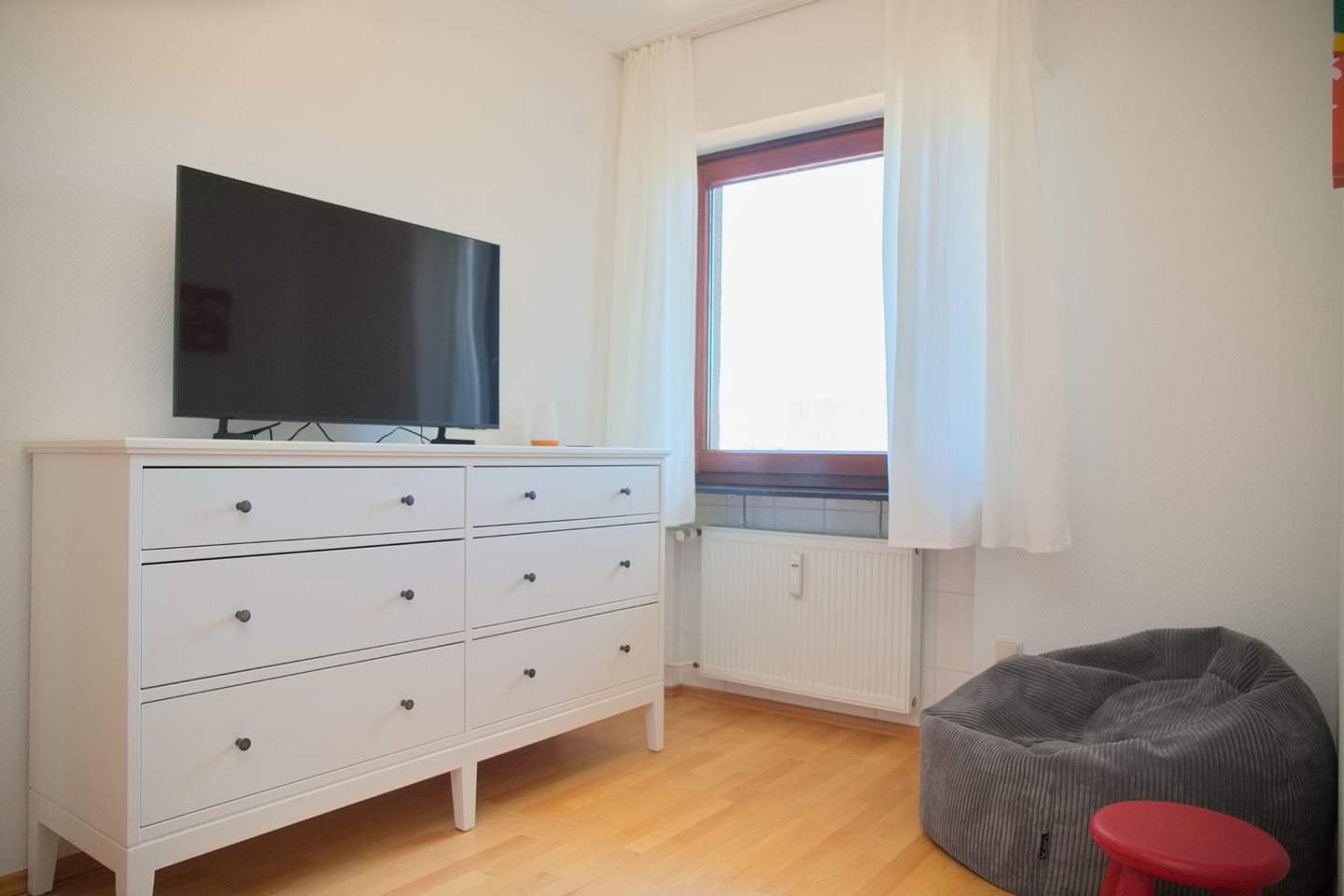 Die Wohnung verfügt über zwei freundlich gestaltete Schlafzimmer, die ausreichend Raum für Ruhe und Erholung bieten. Ein Schlafzimmer ist mit einem Doppelbett ausgestattet, das Kinderzimmer hat ein Etagenbett für 3 Personen. Ein modernes Badezimmer mit Dusche sorgt für zusätzlichen Komfort. Das helle und geräumige Wohnzimmer lädt dazu ein, entspannte Stunden zu verbringen. Hier stehen Ihnen ein Fernseher sowie eine Radioanlage zur Verfügung, damit Sie sich nach einem aktiven Tag in der Natur entspannen können.