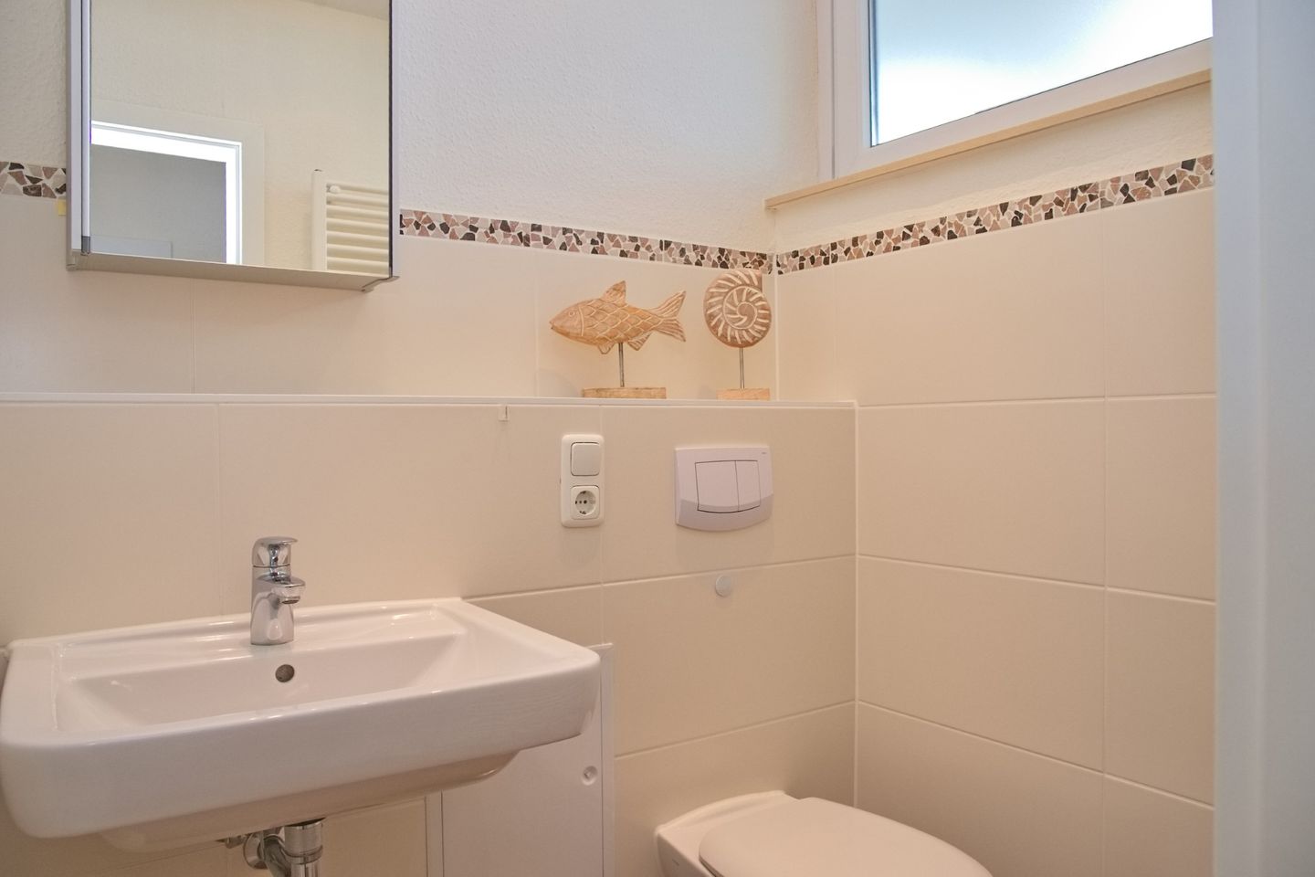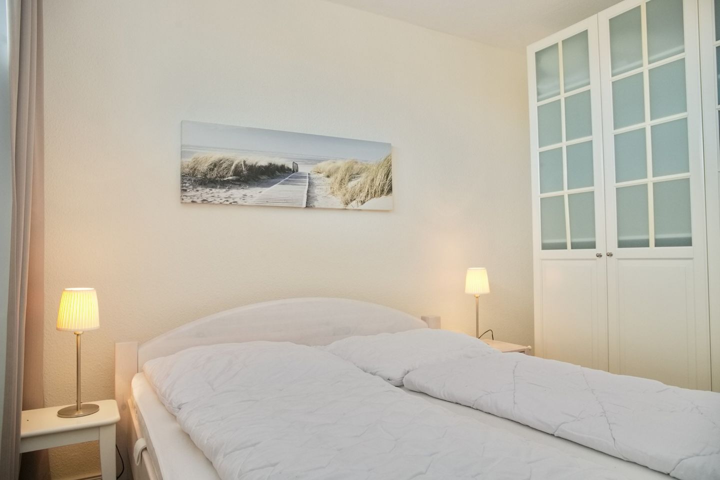 Die nur 2 Gehminuten vom Strand entfernte, im 2 Obergeschoss liegende Ferienwohnung mit möblierten Balkon ist modern und geschmackvoll eingerichtet. Die offene Einbauküche ausgestattet mit einem Cerankochfeld, Backofen, einem Kühlschrank, einem Geschirrspüler, Kaffeemaschine, Wasserkocher sowie einem Toaster geht in das stilvolle Wohnzimmer mit der ausziehbaren Eckcouch, einem Flach-TV, einem Radio/CD, einem BlueRay-Player und dem Essplatz für 4 Personen über. Das gemütliche Schlafzimmer bietet Ihnen ein Doppelbett sowie einen Kleiderschrank zum Verstauen Ihrer Anziehsachen. Da das Schlafzimmer nicht allzu groß ist, passt kein Kinderbett hinnein.
