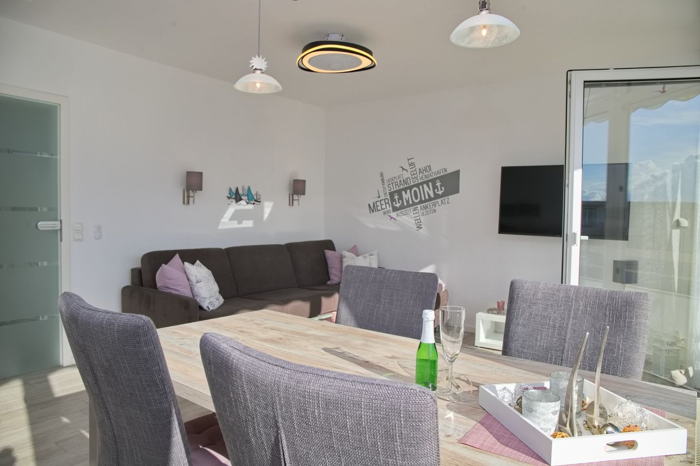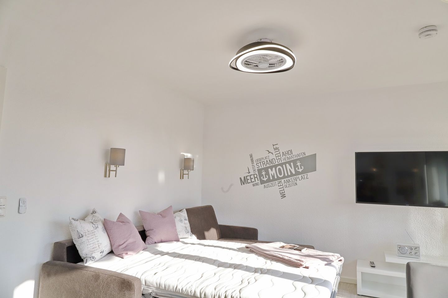 Strandatmosphäre pur erwartet Sie im modern gestalteten Wohnraum. Lehnen Sie sich zurück und genießen Sie diese zauberhafte Kuscheligkeit. Auch die technische Ausstattung lässt keinerlei Wünsche offen, stehen Ihnen WLAN, Flat-TV sowie eine Mini-Hifianlage mit Bluetooth zur Verfügung.