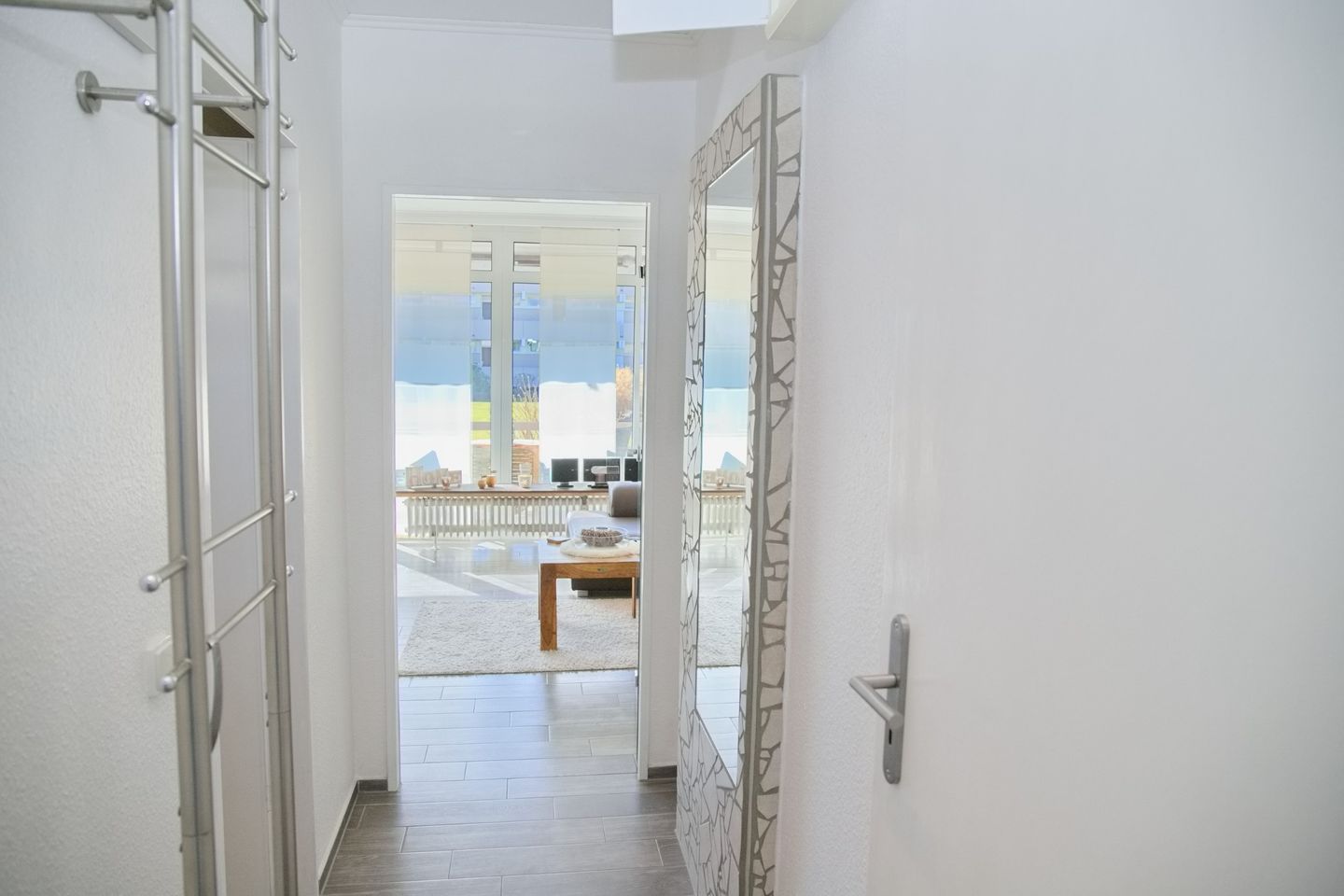 Ein besonderes Highlight der Wohnung ist der überdachte Balkon, auf dem Sie mit einem Glas Wein den erholsamen Ausblick in den Garten genießen können. Gartenmöbel stehen bereit, sodass Sie die frische Luft bequem von Ihrem Rückzugsort aus erleben können. Zusätzlich stehen Ihnen im Waschraum umfassende Nutzungen wie eine Waschmaschine und ein Trockner zur Verfügung, die gemeinschaftlich nutzbar sind.