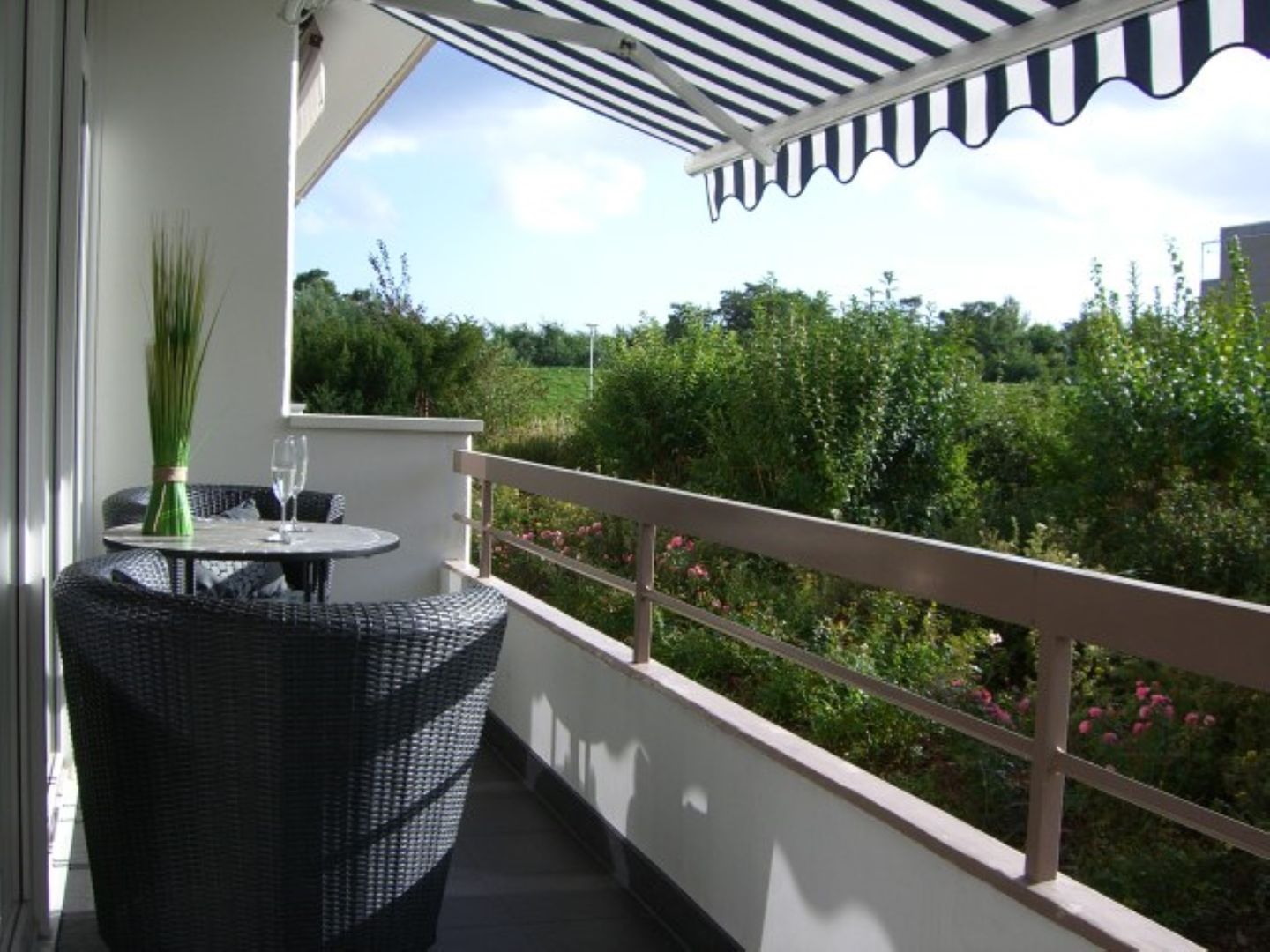 Auf dem Balkon, mit langer Sonneneinstrahlung, laden die gemütlichen Loungesessel zum Chillen ein und eine Markise sorgt für den nötigen Schatten.