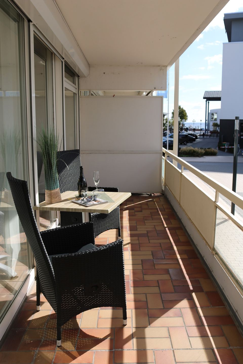 Die gemütliche 2-Zimmerwohnung in der 1. Etage bietet einen idealen Rückzugsort für zwei Personen und besticht durch einen möblierten Balkon in Süd-/Westlage mit Teilseeblick. Hier können Sie die Sonnenstunden optimal nutzen und den Blick aufs Meer genießen.