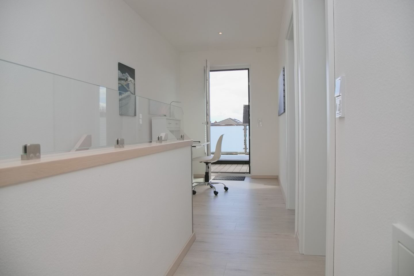 Ein Schreibtisch im Flur des Obergeschosses bietet Ihnen zusätzlich die Möglichkeit, bequem zu arbeiten oder zu lesen.