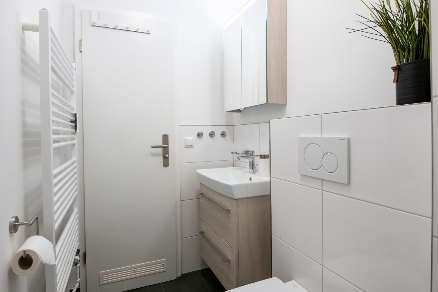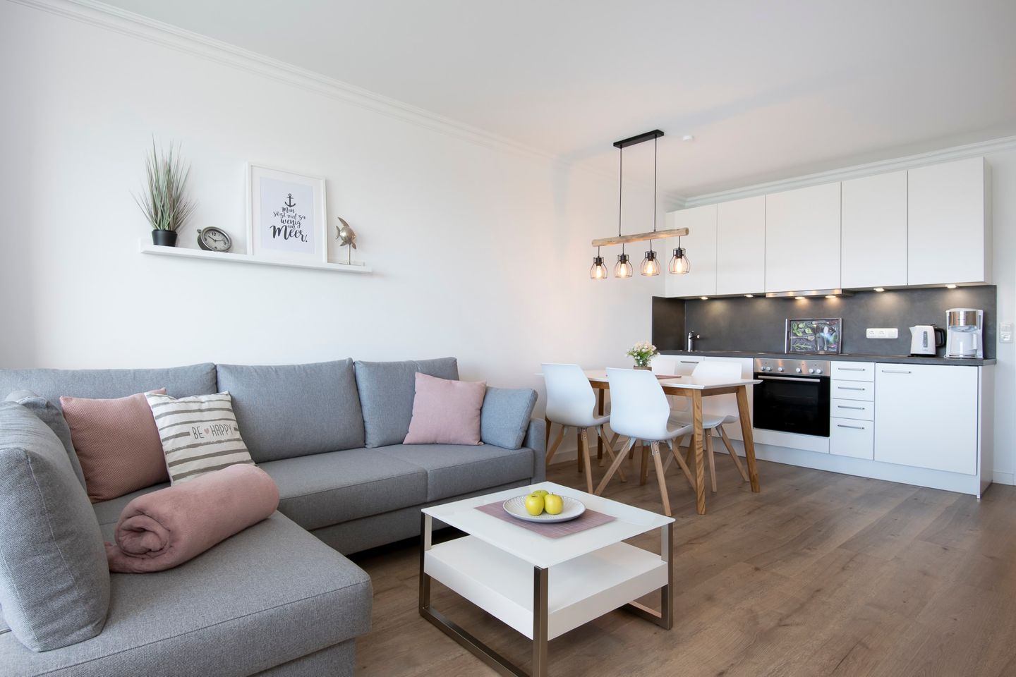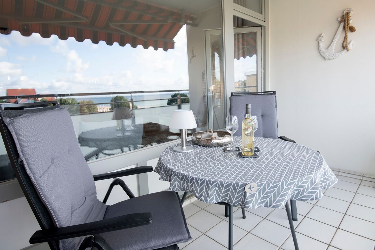 Die Wohnung verfügt über ein Badezimmer mit Dusche sowie über einen Südwestbalkon, der einen schönen Ausblick auf die Ostsee bietet und zum Entspannen einlädt.