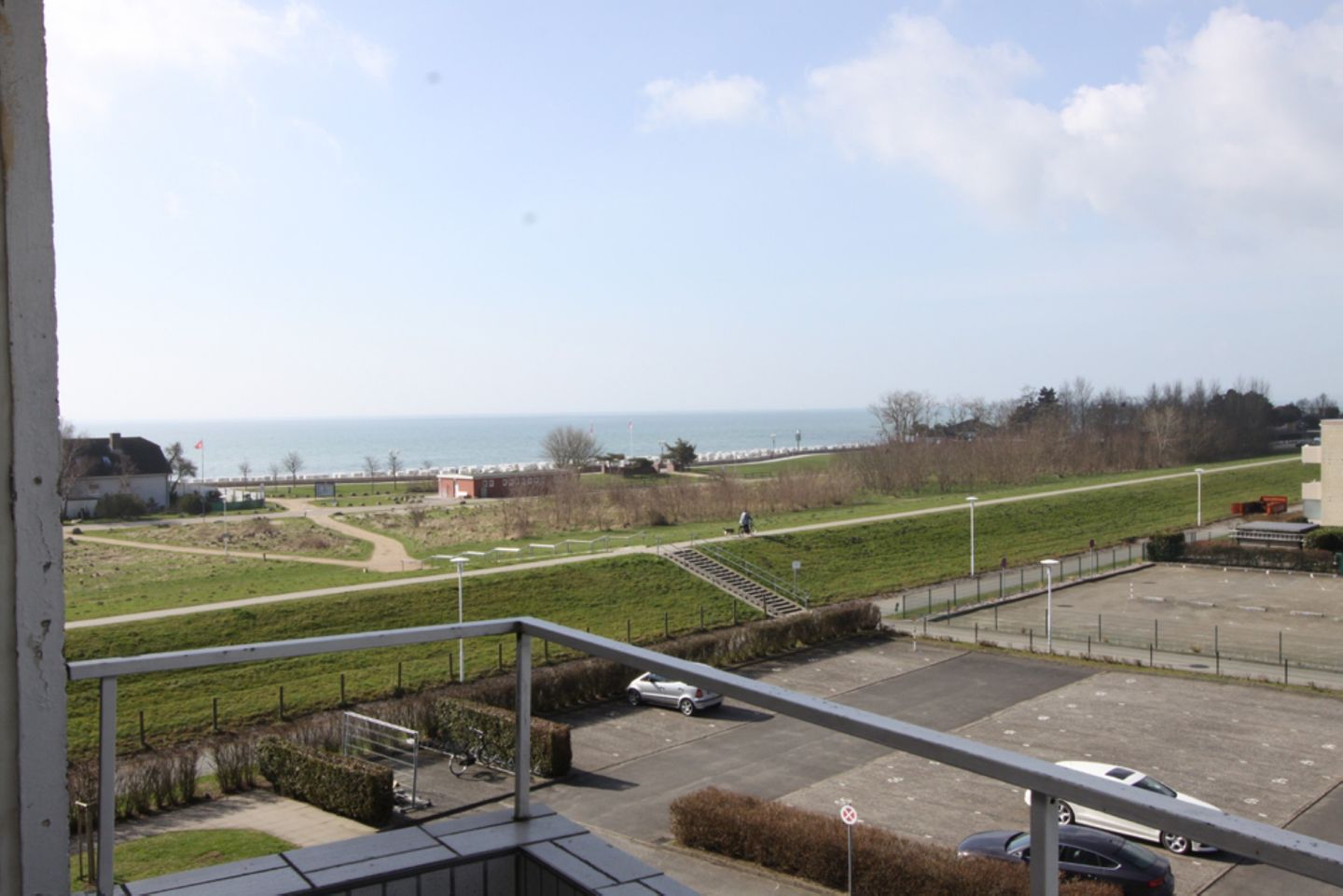 Auf dem Balkon, welcher vom Wohnbereich aus zu begehen ist, haben Sie einen traumhaften Blick in Richtung Seebrücke. Hier können Sie die Abende ausklingen lassen.