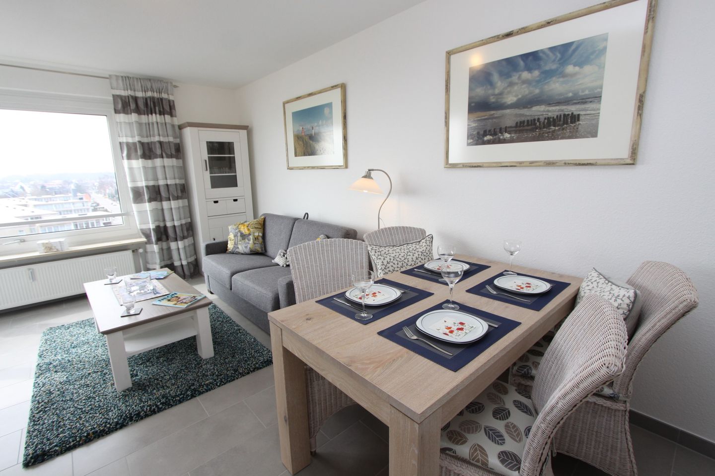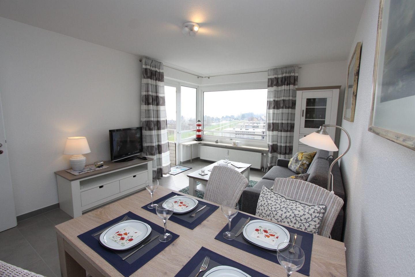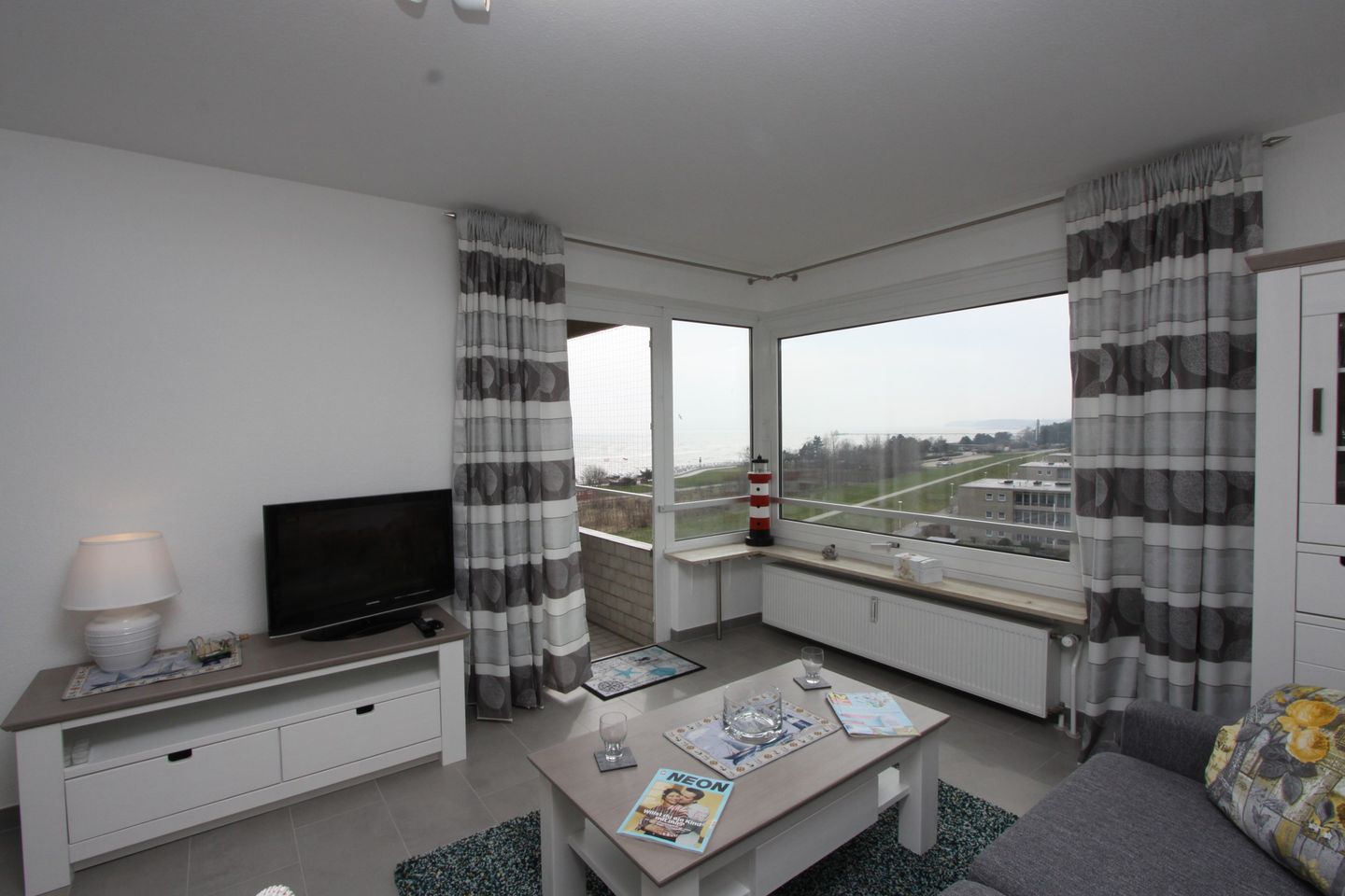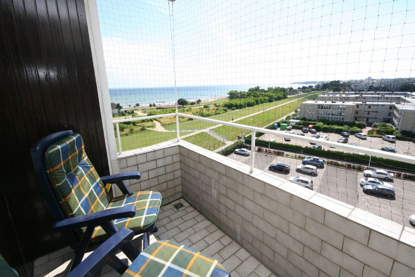 Die Wohnfläche der ca. 43 m² großen 2- Zimmer Ferienwohnung mit Balkon ca. 4mliegt in der 6. Etage (Fahrstuhl bis zur 5. Etage) einer gepflegten Wohnanlage direkt hinter dem Deich.