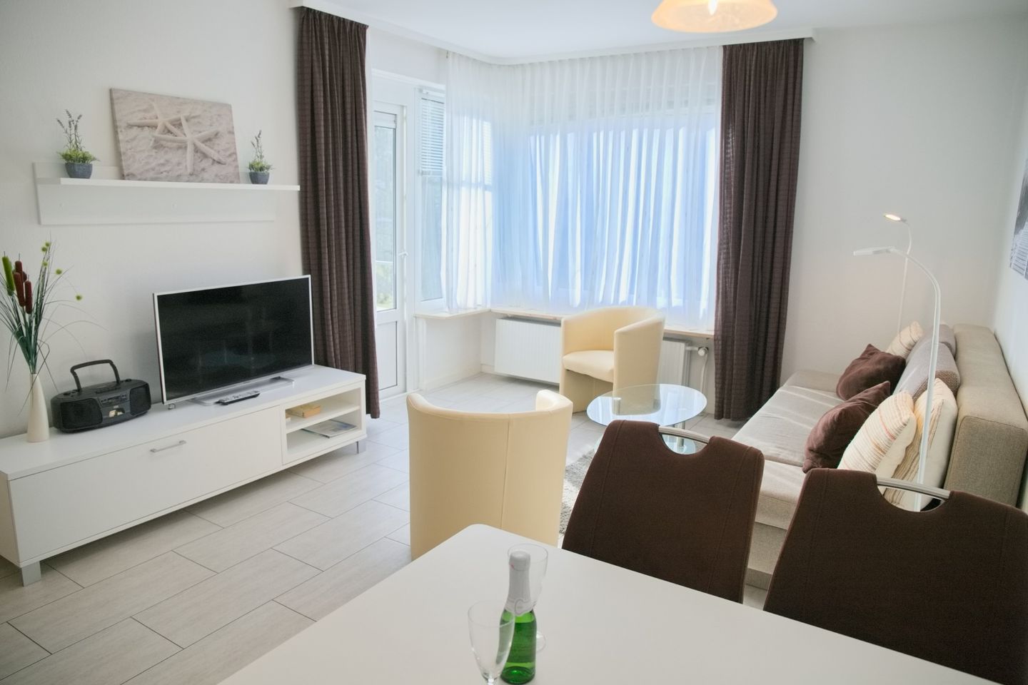 2-Zimmer-Ferienwohnung (ca. 43 qm) für bis zu 4 Personen im 1. Obergeschoss mit Seeblick in West Lage.