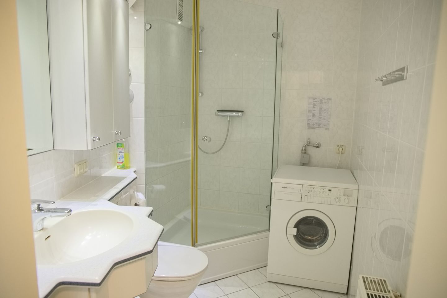 Anliegend ist die offene Einbauküche, in der ein Backofen mit Mikrowelle mit Grillfunktion, ein Induktions-Kochfeld, ein Geschirrspüler, ein Kühlschrank mit Gefrierfach, eine Kaffeemaschine, ein Wasserkocher, ein Toaster und andere Kochutensilien die Ausstattung komplementieren. Im Schlafzimmer befinden sich ein komfortables Boxspringbett sowie ein Kleiderschrank mit viel Stauraum und einer Kommode. Weiteren Stauraum finden Sie in dem Schrank im Flur. Im Bad zu finden sind ein WC, ein Waschbecken, eine Perleffekt-Dusche sowie eine Waschmaschine.