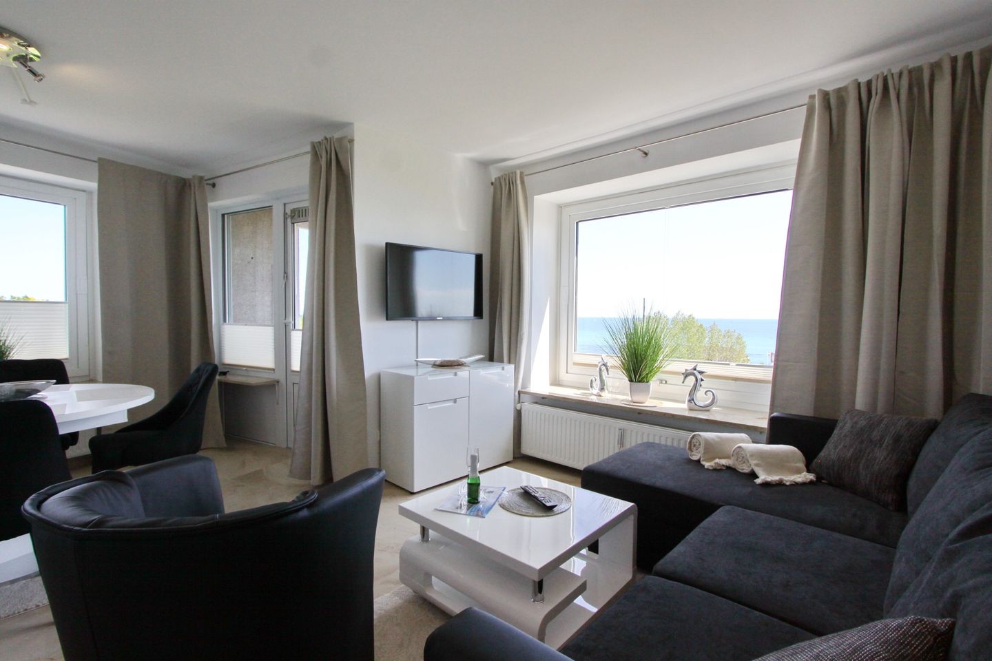 Der möblierte Balkon garantiert Meeresrauschen! Schauen Sie über die Lübecker Bucht und genießen den Weitblick!
