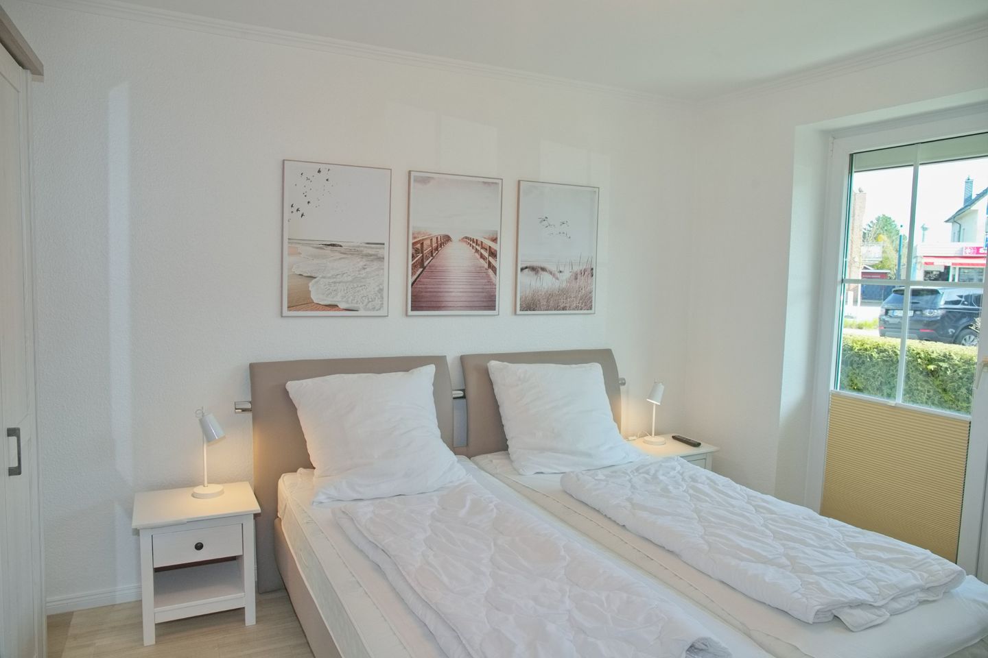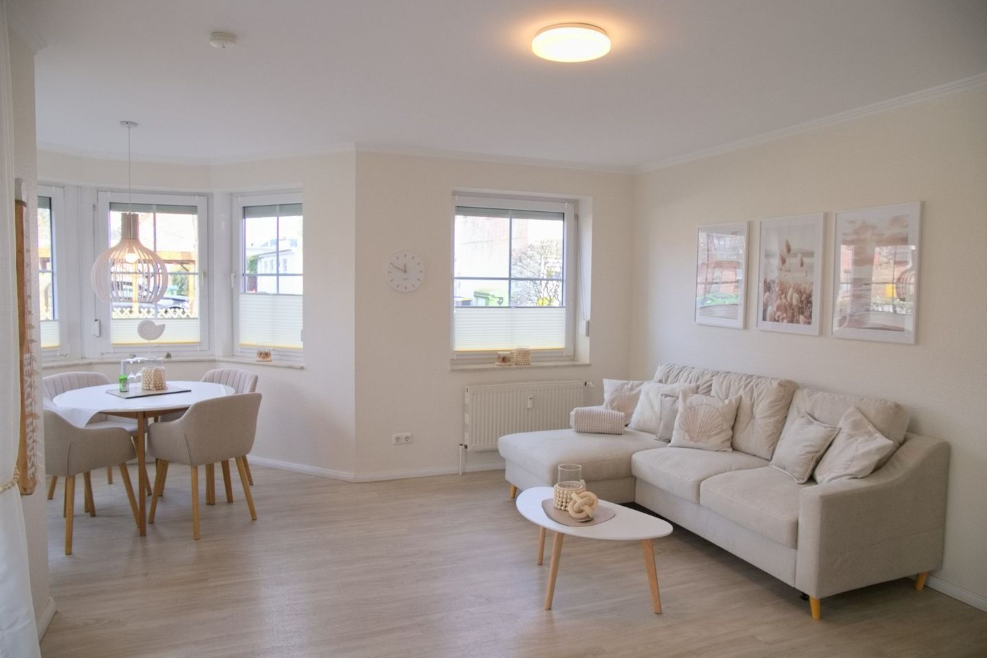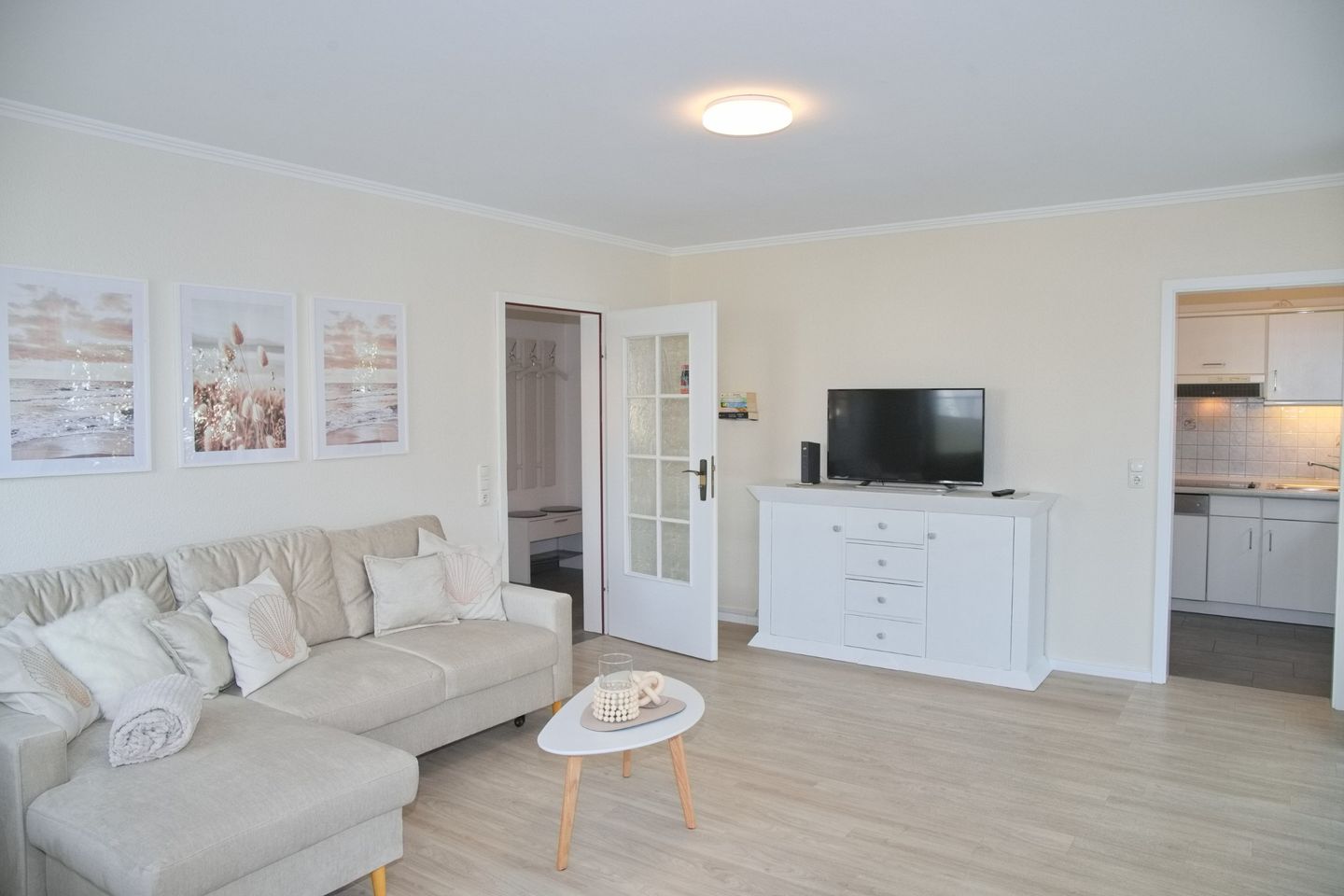 Diese charmante 2-Zimmer-Ferienwohnung erstreckt sich über großzügige ca. 55 Quadratmeter im Erdgeschoss einer gepflegten Wohnanlage, die kürzlich renoviert wurde. Jeder Raum besticht durch seine stilvollen Fliesen oder Planken in Holzoptik und bietet zusätzlich Rollläden für die nötige Privatsphäre.