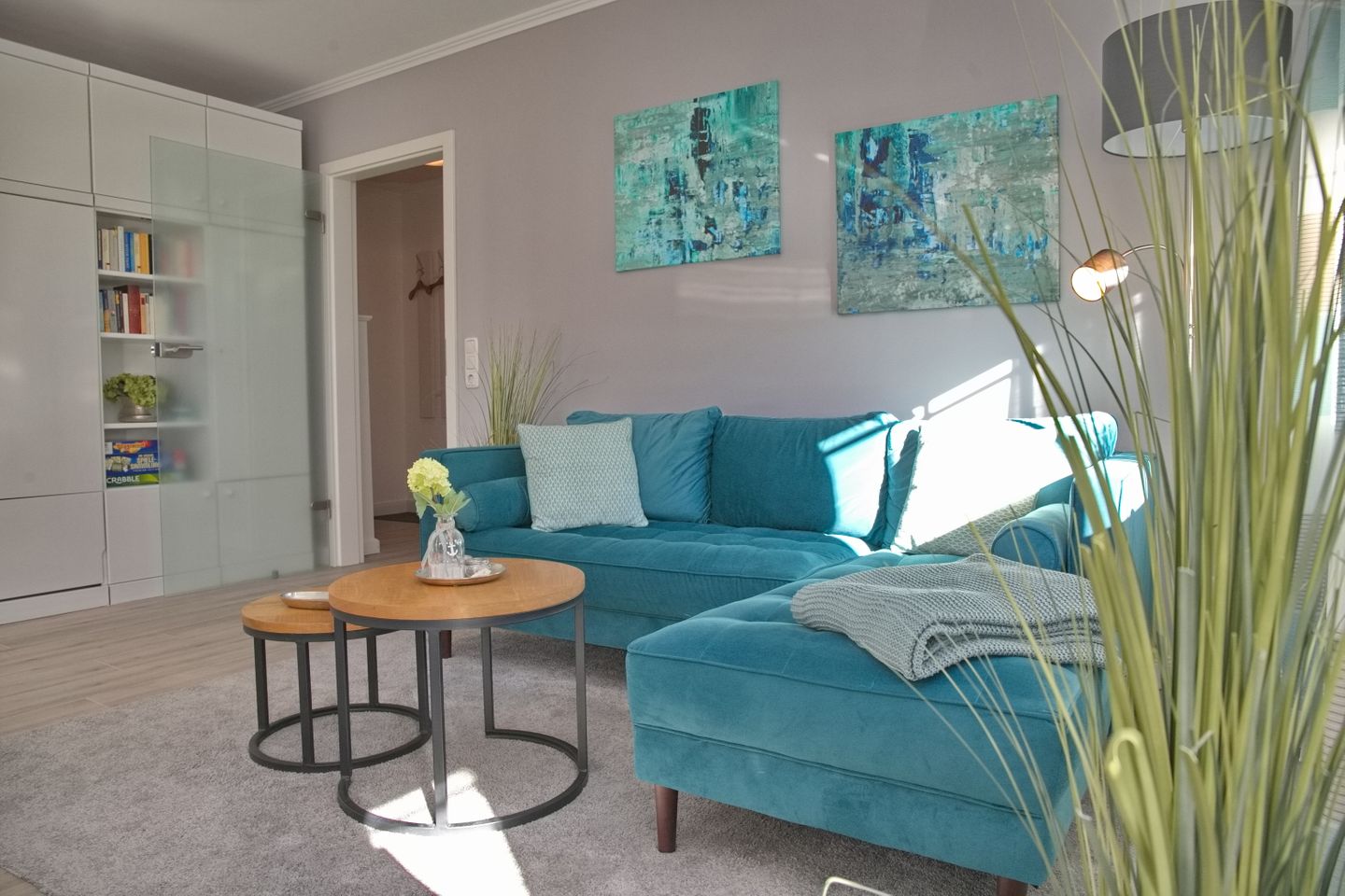 Die Ferienwohnung selbst bietet Ihnen alles, was Sie für einen entspannten Aufenthalt brauchen. Ausgestattet mit einem gemütlichen Schlafzimmer und einem hellen Wohnzimmer, in dem sich auch eine Sofaecke zum Entspannen befindet, ist genügend Platz, um die Freizeit zu genießen. Hier finden Sie auch zwei moderne Flachbild-TVs und einen DVD-Spieler, ideal für gemütliche Filmabende, die Sie zusammen verbringen können.