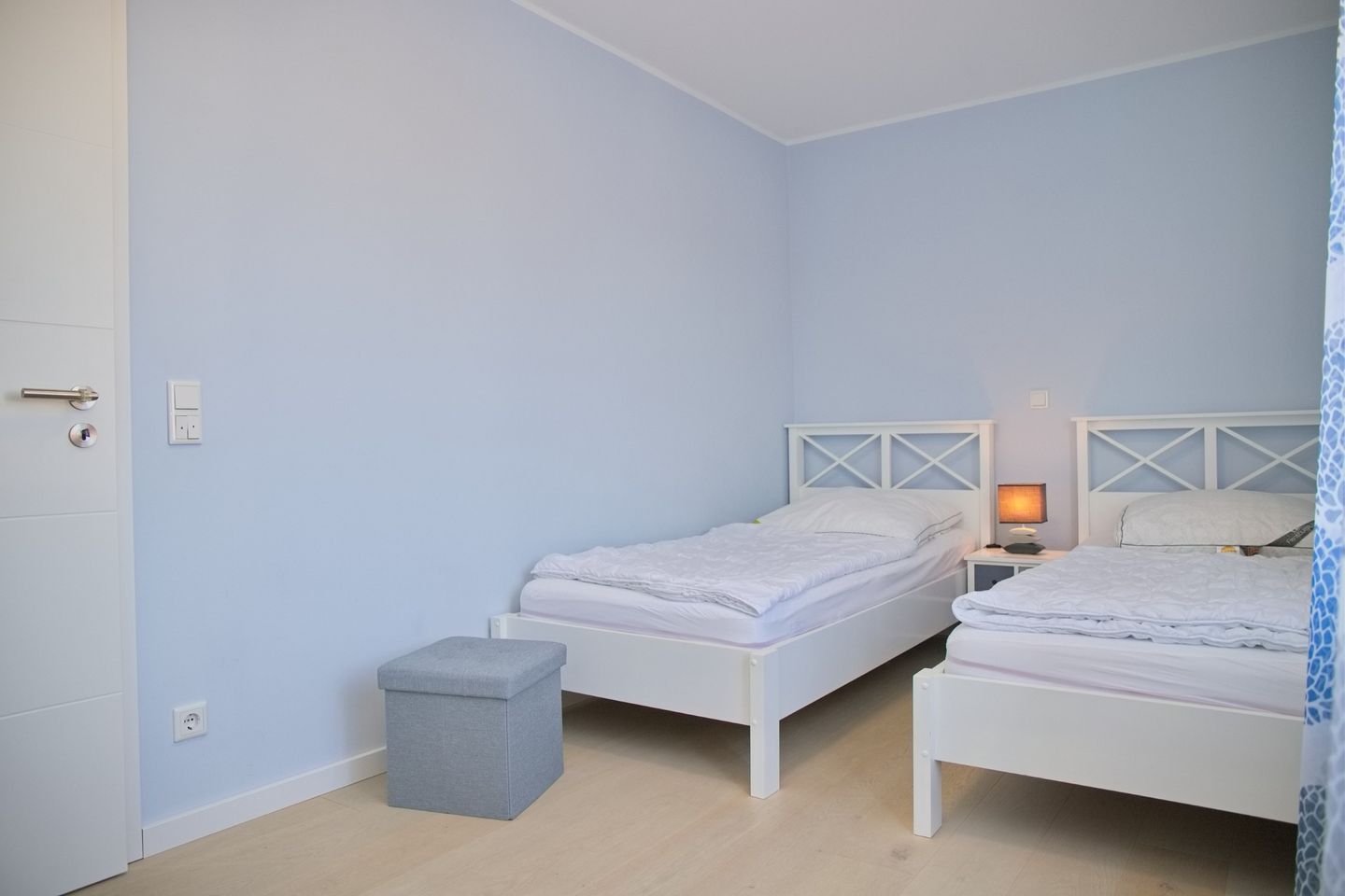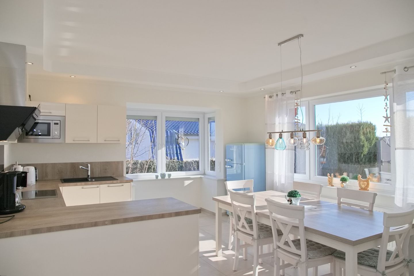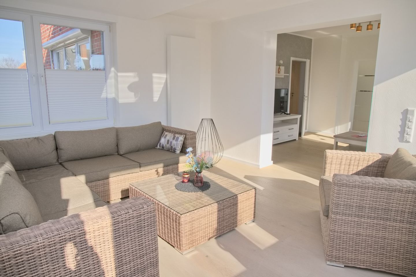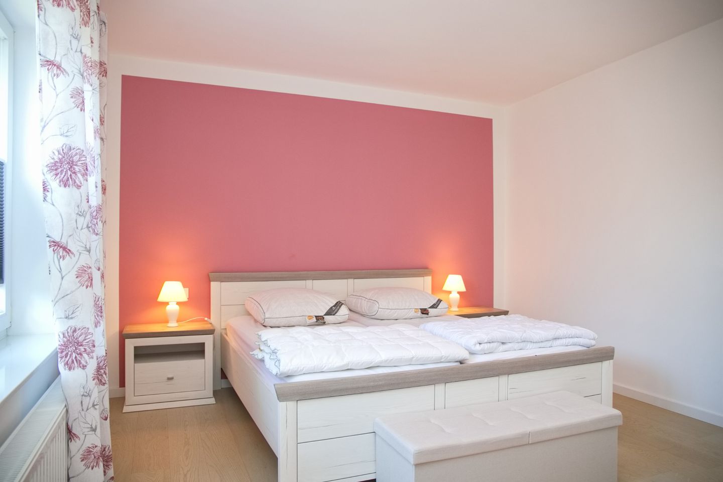 Die vollständig renovierte Ferienwohnung verfügt über zwei separate Schlafzimmer, ein modernes Badezimmer mit Fußbodenheizung sowie helle, freundliche Wohnräume. In den Schlafräumen, im Wohnzimmer und im Wintergarten sorgt Echtholz-Parkett für ein angenehmes Wohngefühl. Für zusätzlichen Komfort stehen kostenfreies WLAN, ein TV, ein Geschirrspüler sowie ein PKW-Stellplatz direkt am Haus zur Verfügung. Die Wohnung ist bewusst haustierfrei gehalten und eignet sich ideal für Gäste, die Wert auf Ruhe, Sauberkeit und eine gepflegte Unterkunft legen.
