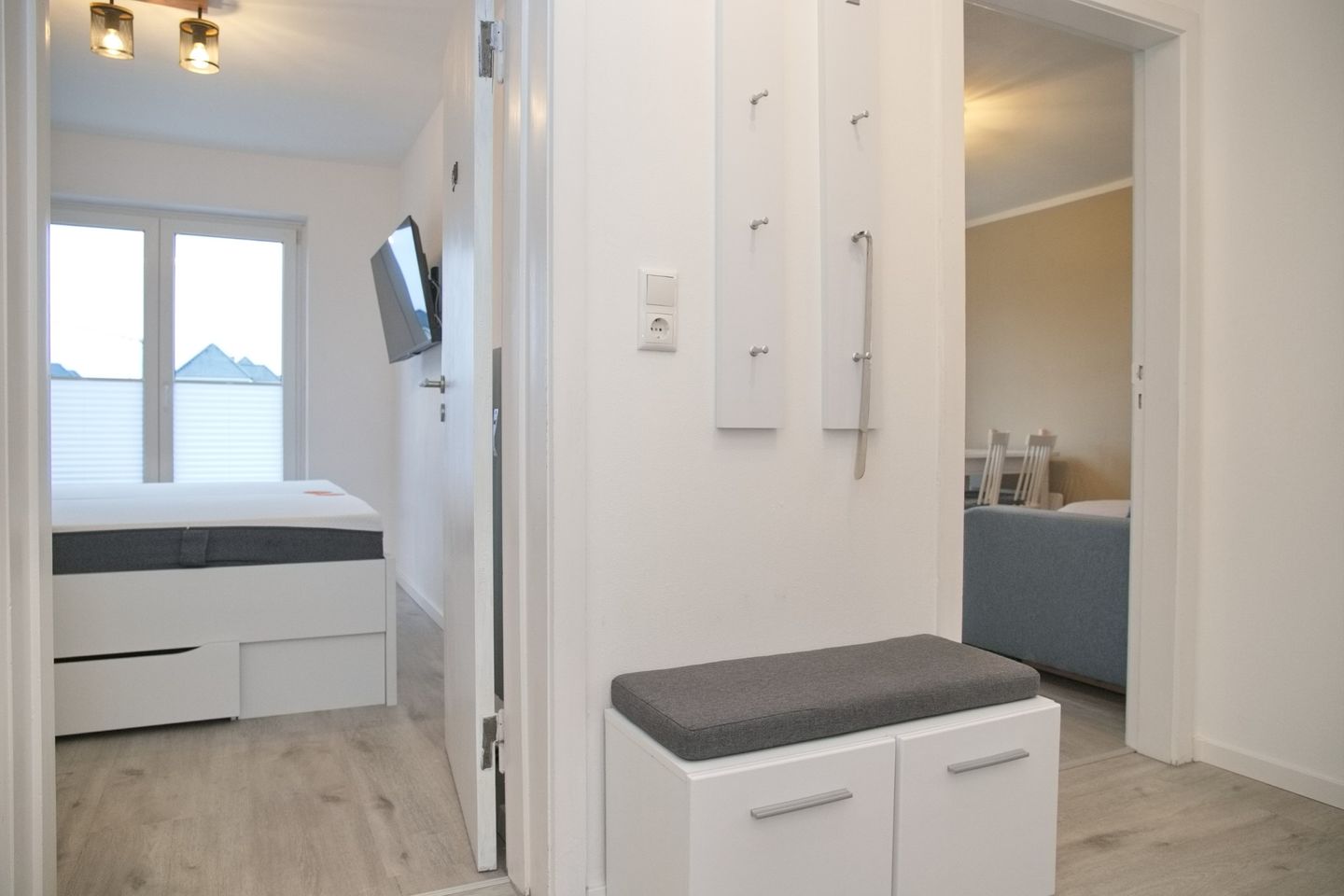 Die Wohnung verfügt über zwei gemütliche Schlafzimmer, in denen Sie nach einem erlebnisreichen Tag entspannen können. Der offene Wohnbereich ist lichtdurchflutet und lädt mit seinem geschmackvollen Design und moderner Einrichtung zum Verweilen ein. Eine voll ausgestattete, geschlossene Küche mit einem Induktionsherd und einem Gefrierfach im Kühlschrank ermöglicht es Ihnen, kulinarische Köstlichkeiten zuzubereiten. Der Essbereich in Kombination mit dem Wohnzimmer bietet genug Platz, um gesellige Abende zu verbringen.