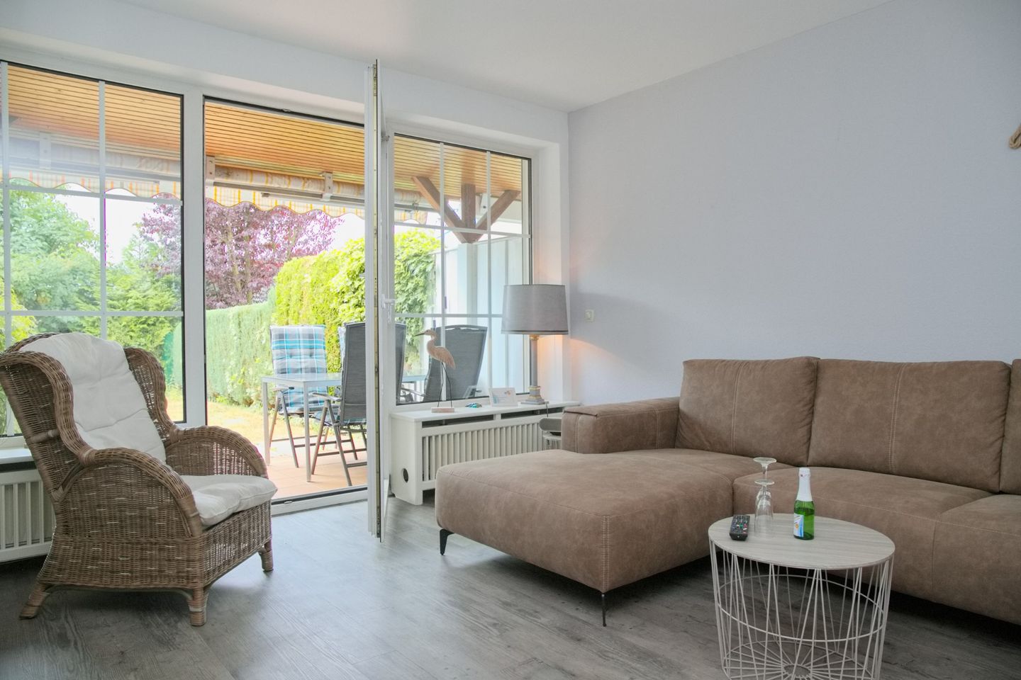 Weiter kommen Sie in den großzügigen Wohnbereich mit Essecke und Zugang zu der möblierten Terrasse und Garten.