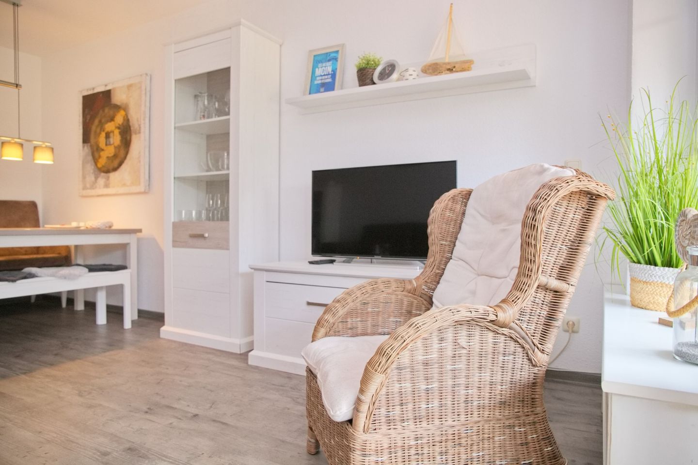Im Wohnbereich finden Sie eine Ledercouchgarnitur und einen Sessel. Zur Unterhaltung stehen Ihnen hier ein Flachbild- TV und eine Stereoanlage mit Bluetooth bereit.