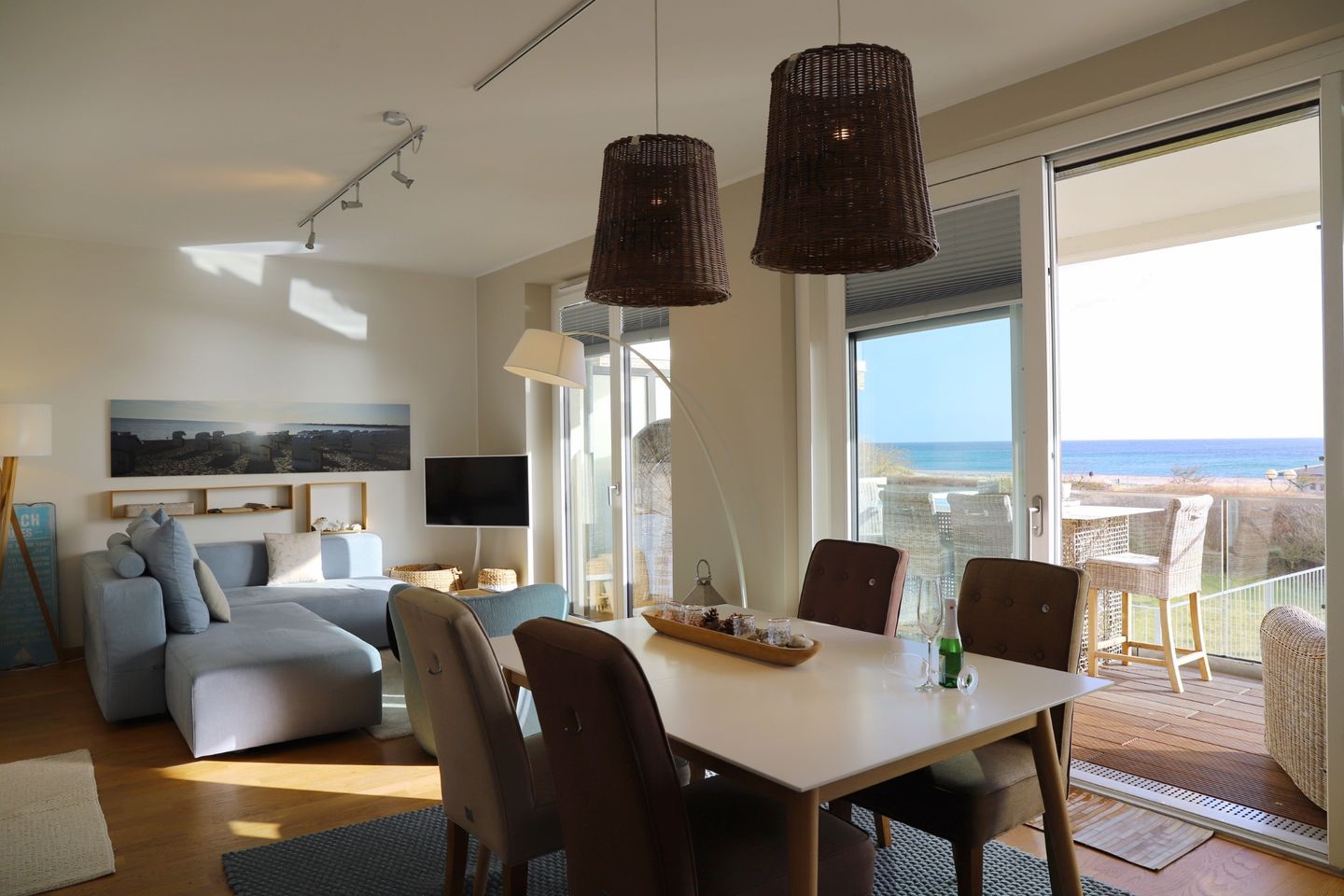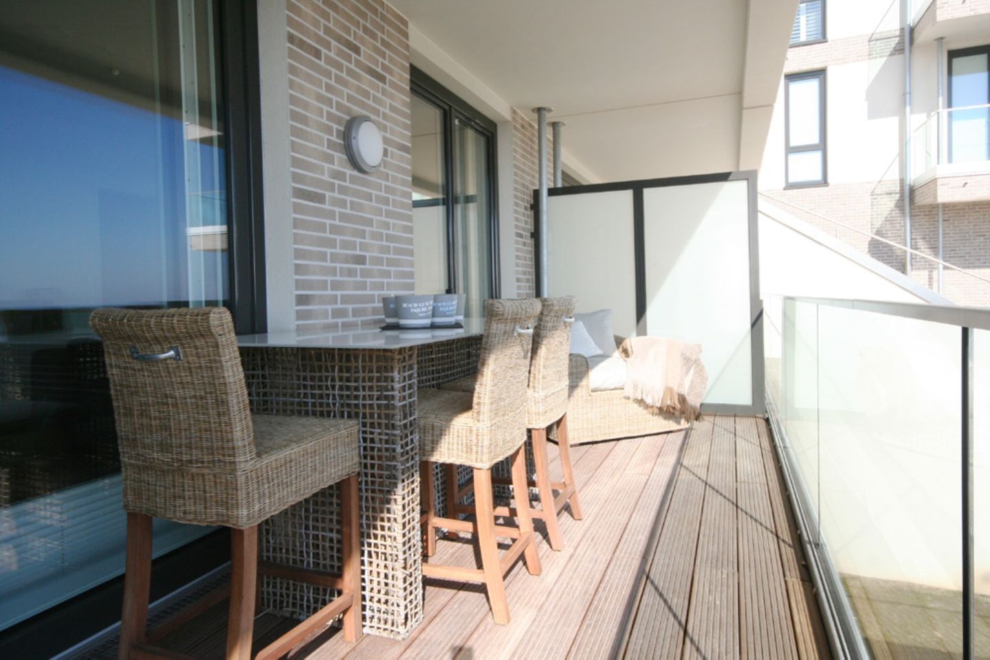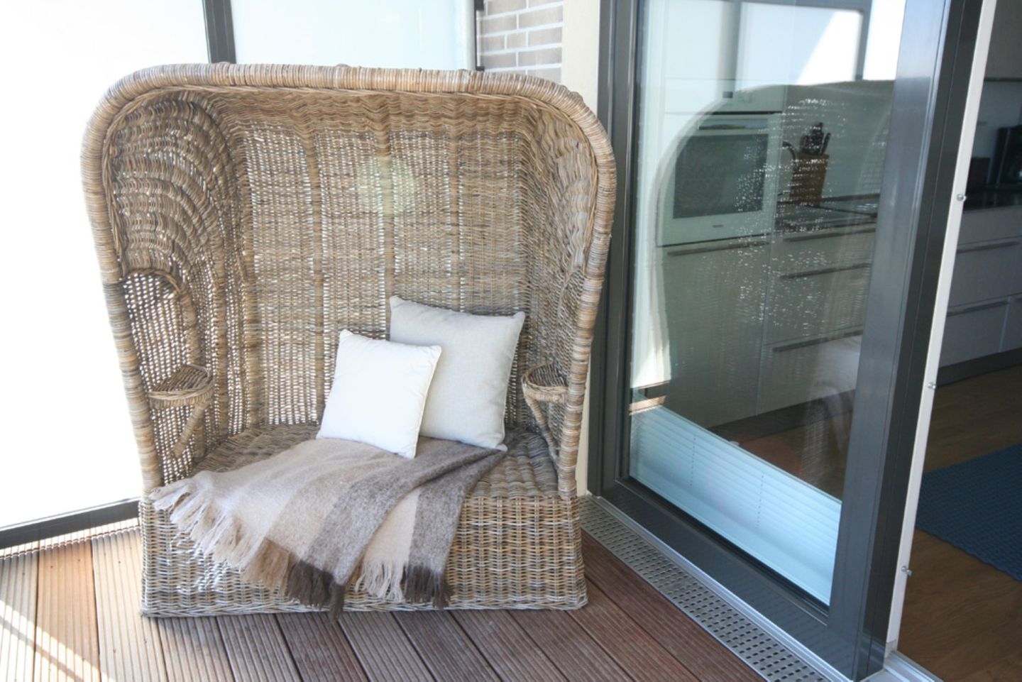 Der möblierte Balkon verspricht Sonne und Meerblick.