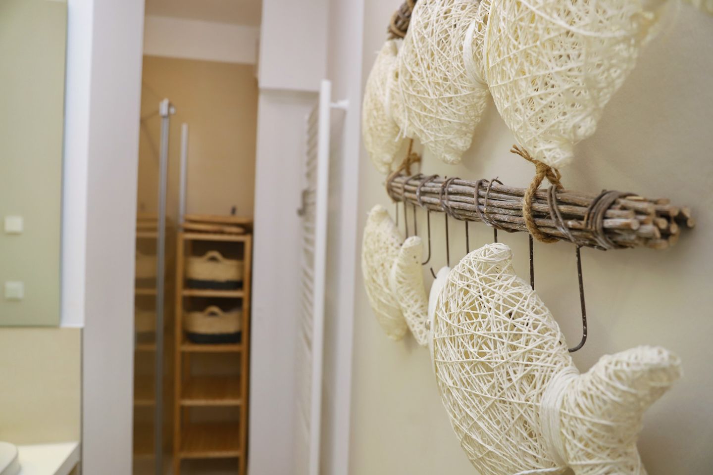 Stauraum für Ihre Kleidung finden Sie auf dem Flur in dem großen Kleiderschrank mit Spiegeltür. Gegenüber des Schlafzimmers finden Sie das innen liegende Bad mit wandhängendem WC, Doppelwaschtisch, Handtuchheizung, Fön und bodengleicher Regendusche.