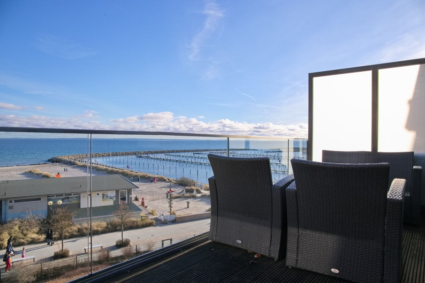 Der große möblierte Balkon mit Markise lädt zum verweilen ein. Hier ist Meerblick garantiert.