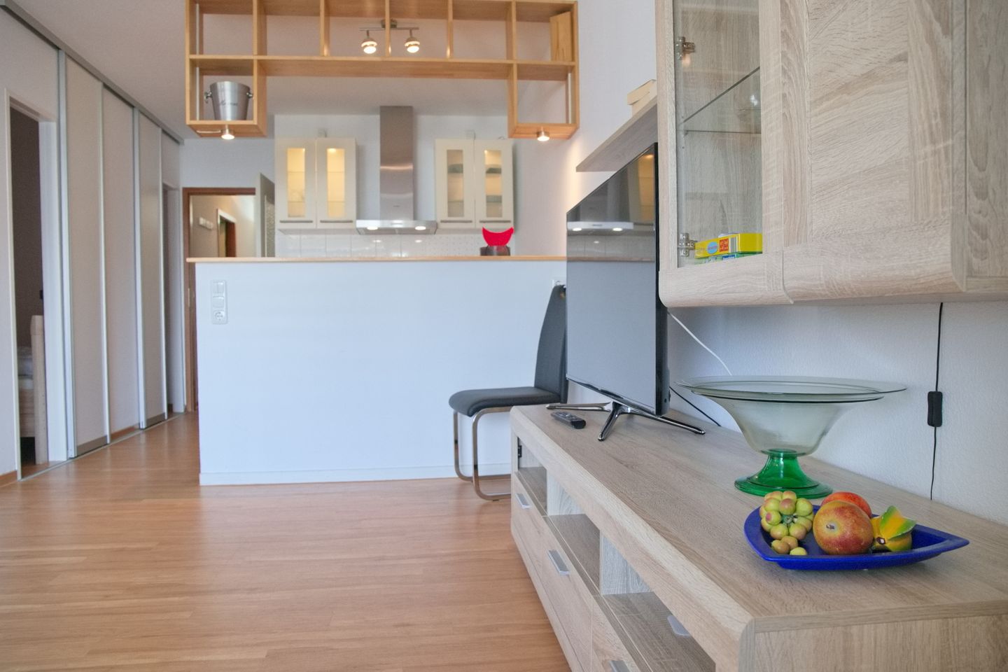 In der Wohnung angekommen erwartet Sie ein schmaler Flur, welcher Sie direkt in den offenen Koch- und Wohnbereich leitet.