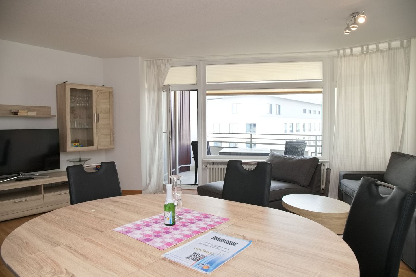 Diese ca. 53m² große 3 Zimmer Ferienwohnung befindet sich in der 6. Etage einer Wohnanlage direkt an der Seebrücke von Grömitz.