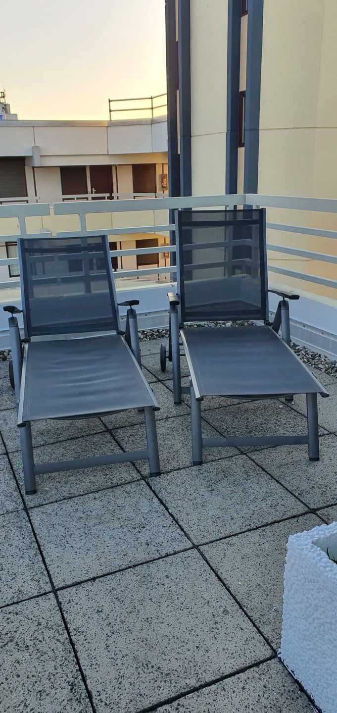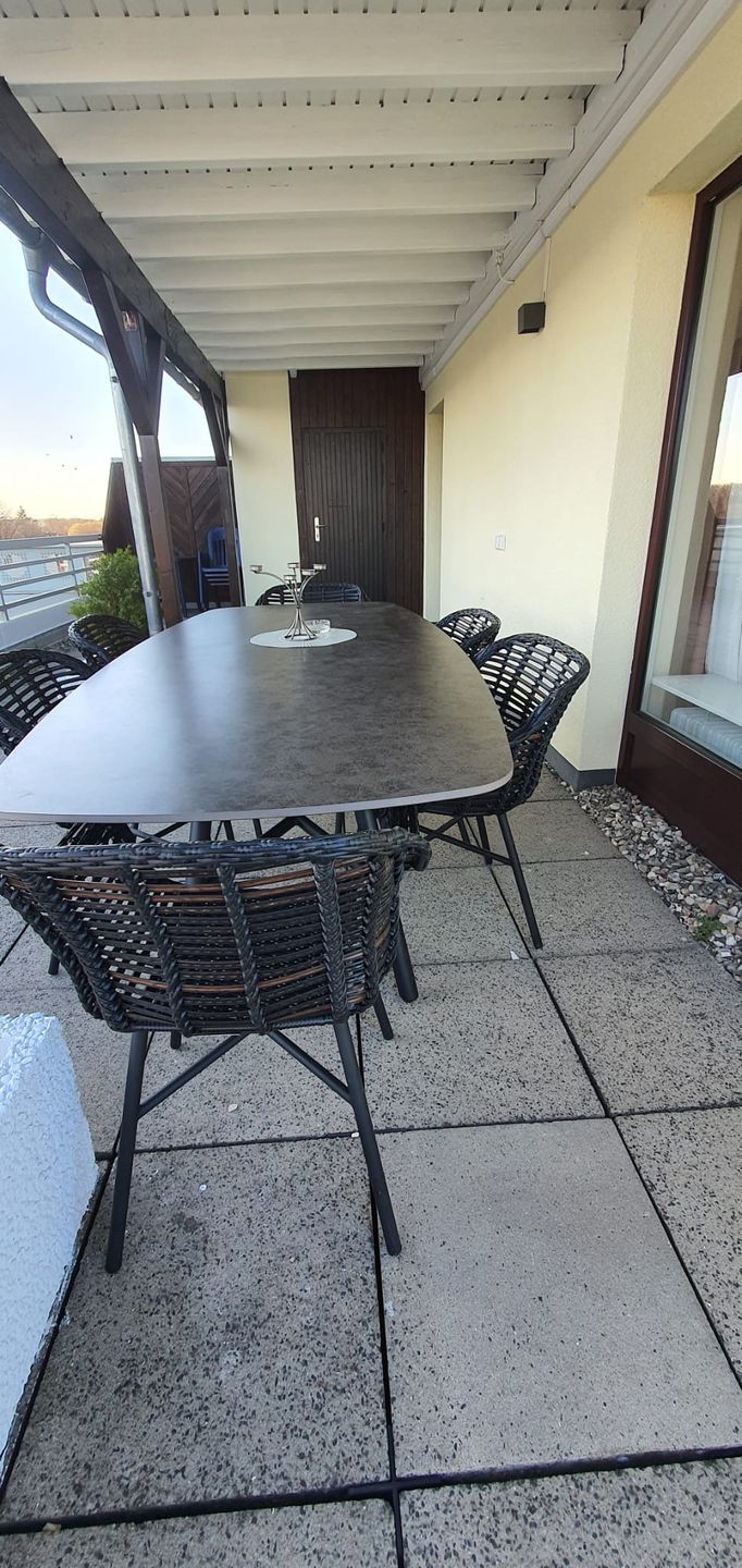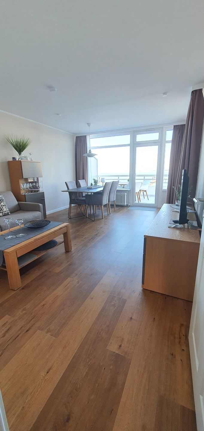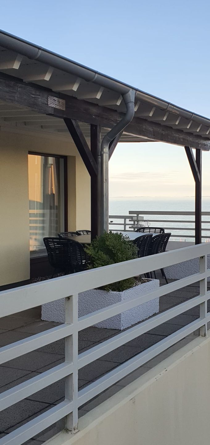 Ein weiteres Highlight der Wohnung ist die großzügige, teilüberdachte Dachterrasse, die direkt an den Balkon anschließt. Diese Terrasse bietet Ihnen noch mehr Platz zum Entspannen und Wohlfühlen. Sie ist teilweise überdacht, sodass Sie auch bei nicht ganz so schönem Wetter die frische Luft genießen können. Die Dachterrasse ist mit bequemen Sitzmöbeln ausgestattet, ideal für ein Sonnenbad oder ein gemütliches Beisammensein mit Familie und Freunden. Hier oben können Sie die Ruhe und den fantastischen Ausblick auf das Meer und die Seebrücke in vollen Zügen genießen.