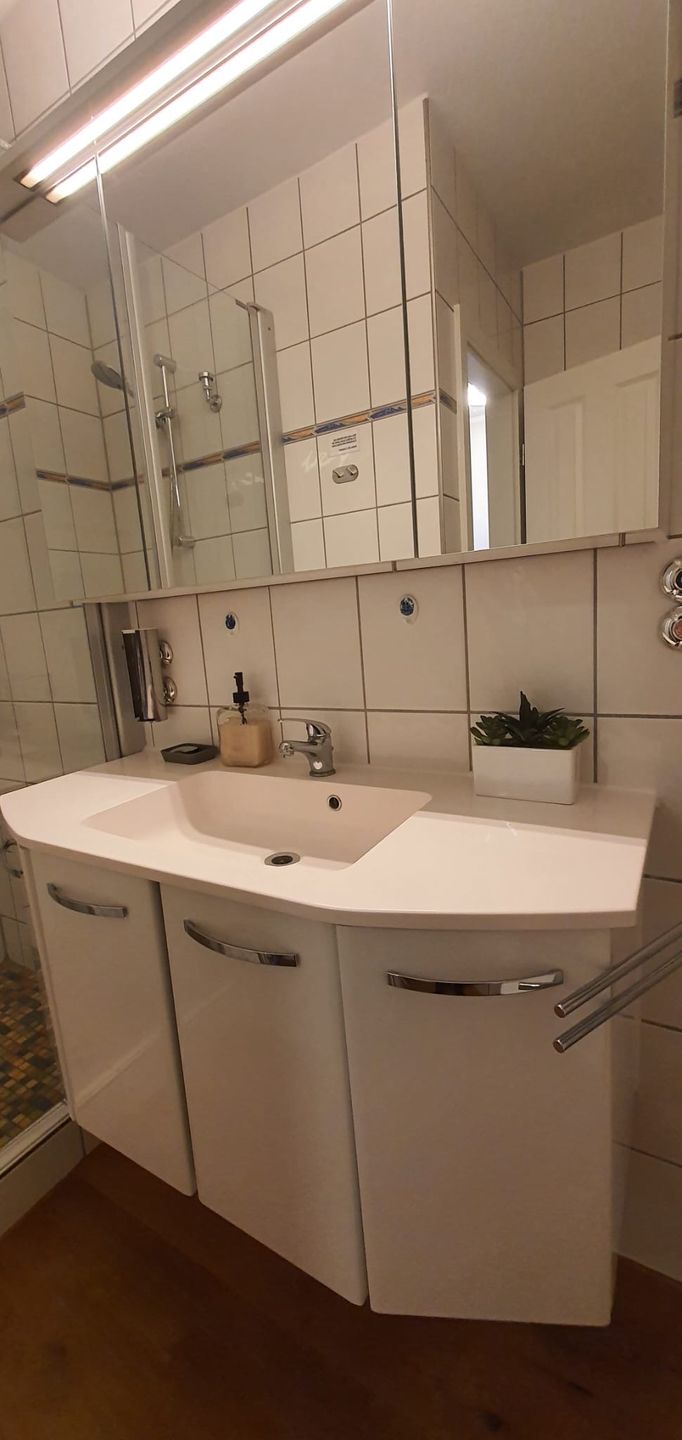 Im Badezimmer erwartet Sie eine Dusche, ein WC, ein Spiegelschrank sowie ein Fön, sodass Sie sich auch hier rundum wohlfühlen können.