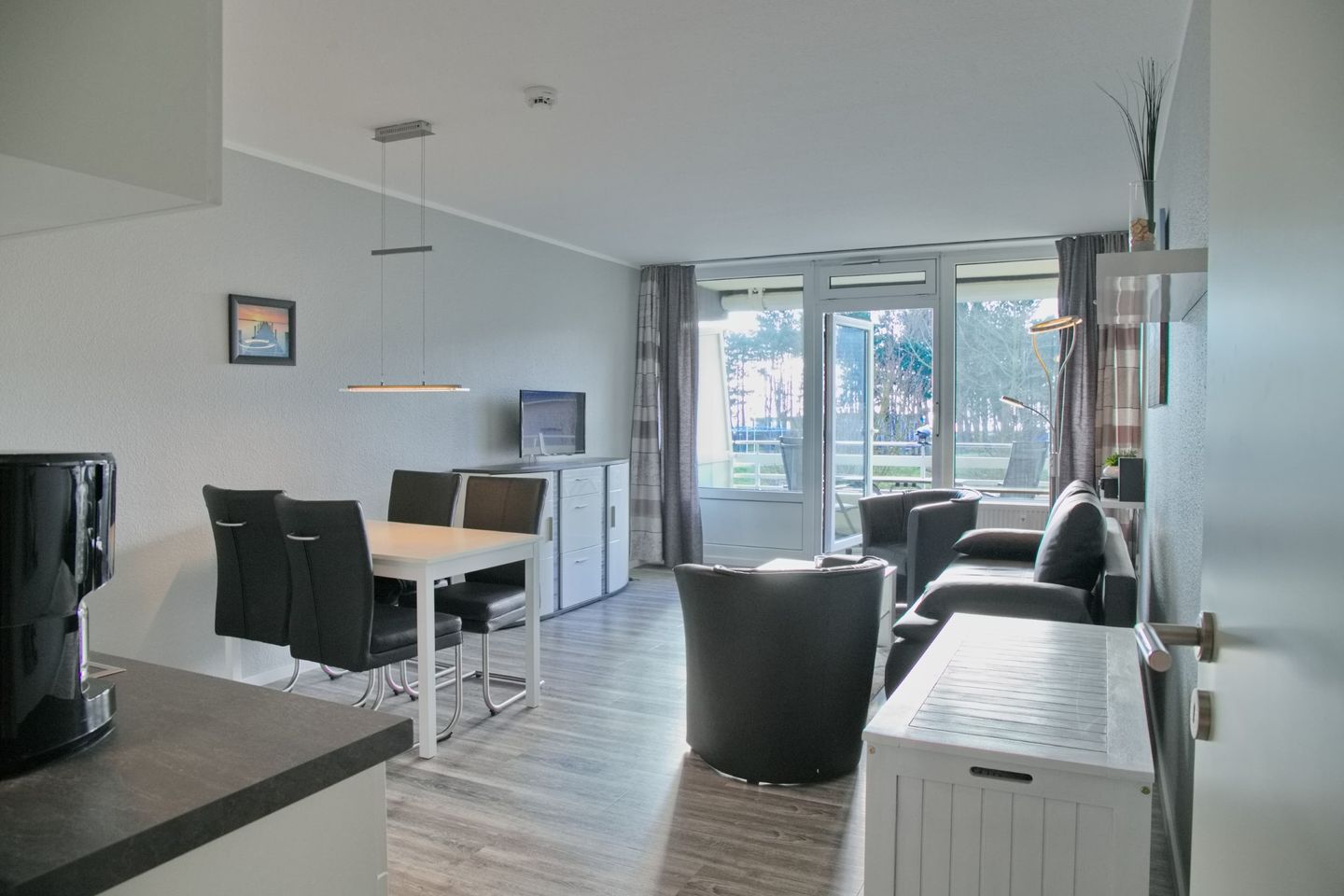 Vom Wohnbereich aus betreten Sie Ihren wunderschönen, möblierten Süd-/ Westbalkon mit Blick über den Deich zur Ostsee. Die Sonne können Sie hier bis in die Abendstunden genießen.